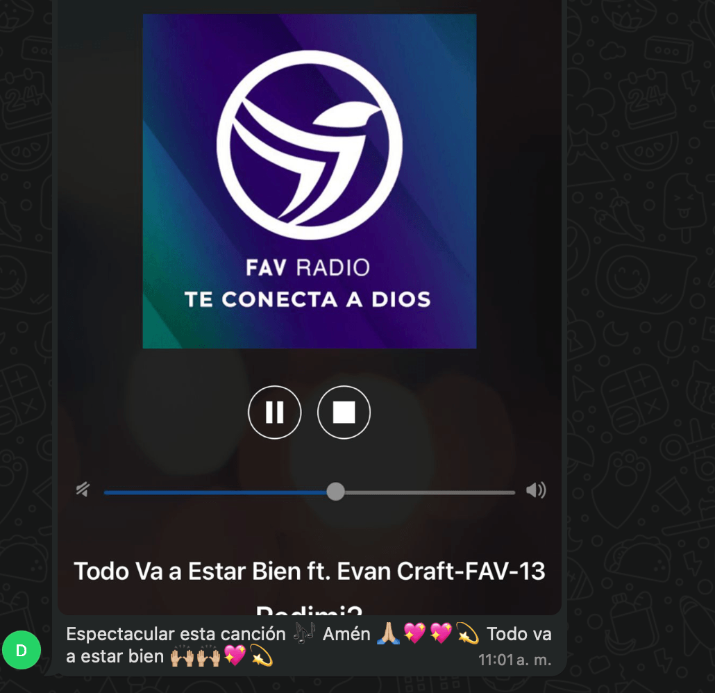 FAV Radio nació como un sueño impulsado por la fe: una emisora digital sin fines de lucro, creada para conectar corazones con Dios, fortalecer familias y llevar esperanza a cada rincón del mundo hispano. Transmitimos las 24 horas del día, con música cristiana, mensajes de ánimo e inspiración, y contenido que edifica y entretiene.